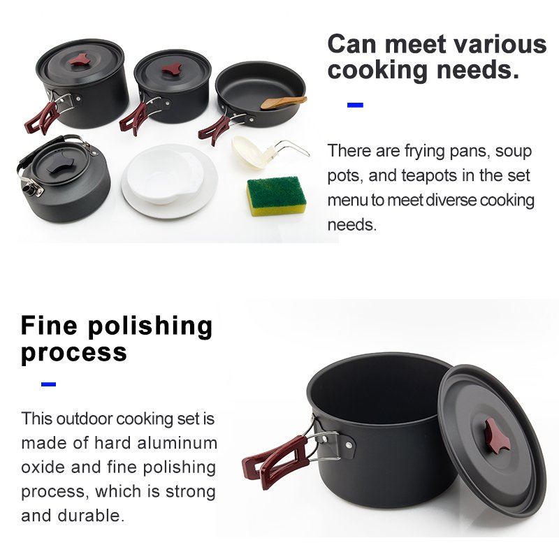 Облегченная посуда для кемпинга и походов. На странице товара можно выбрать из множества вариантов включая столовые приборы, сковородки, кастрюльки. Ручки у посуды складные, а сама она храниться друг в друге для минимально занимаемого места при хранении