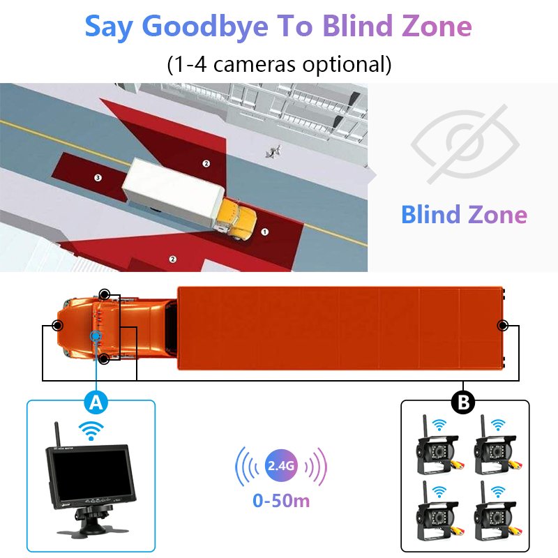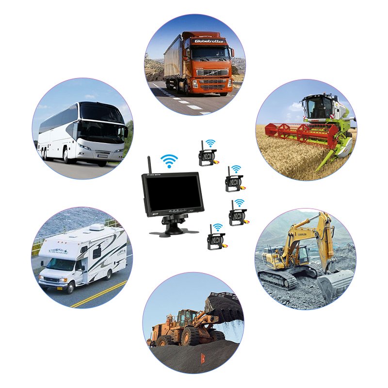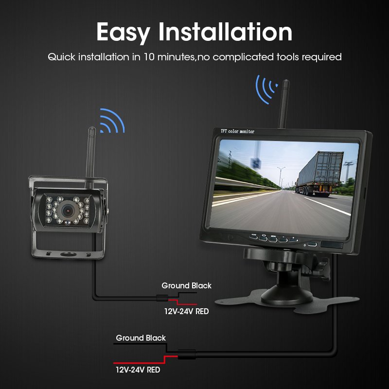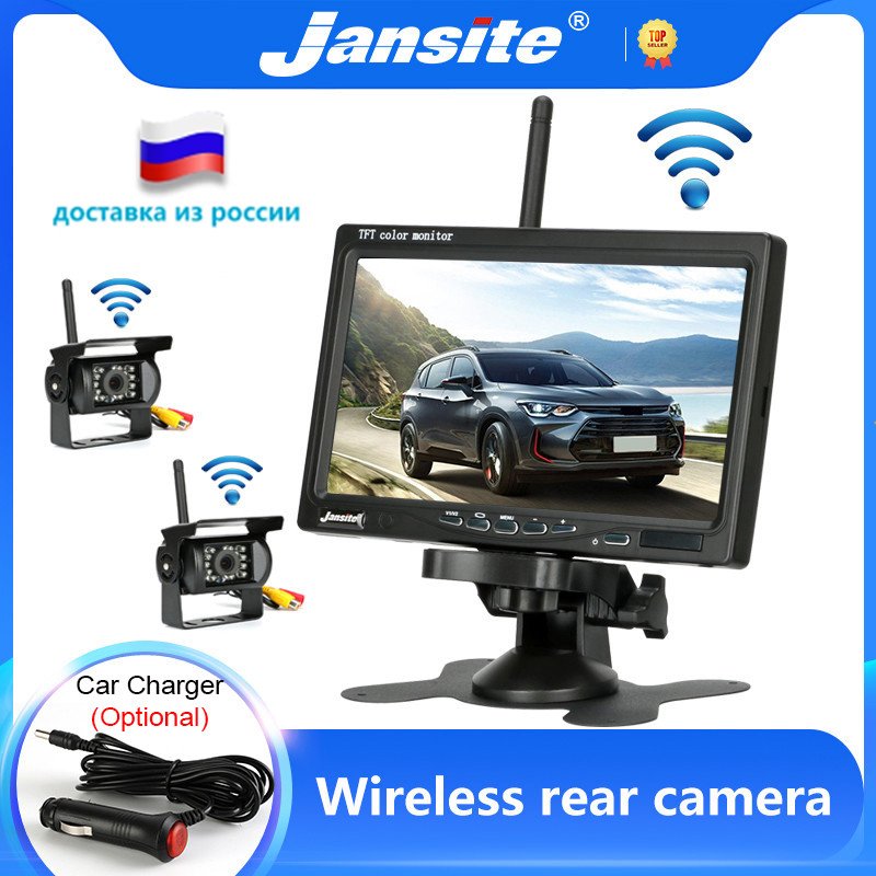 Комплект из 7" монитора с 1-4 (на выбор) камерами с беспроводным подключением. Идеальный вариант, если вся проводка уже сделана и тянуть видеокабель через весь автодом нет желания