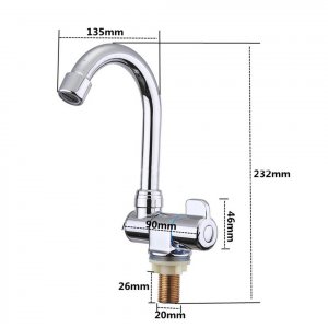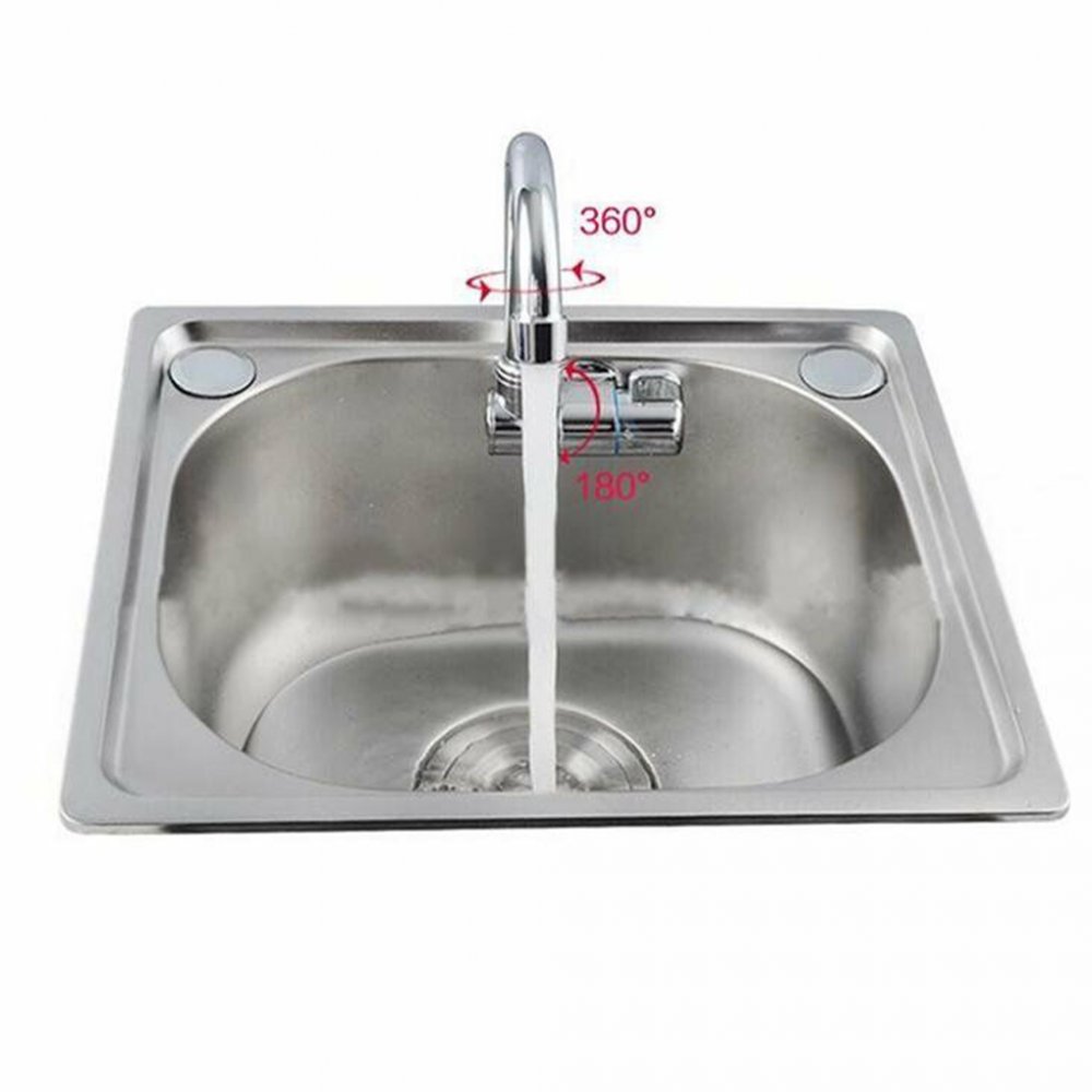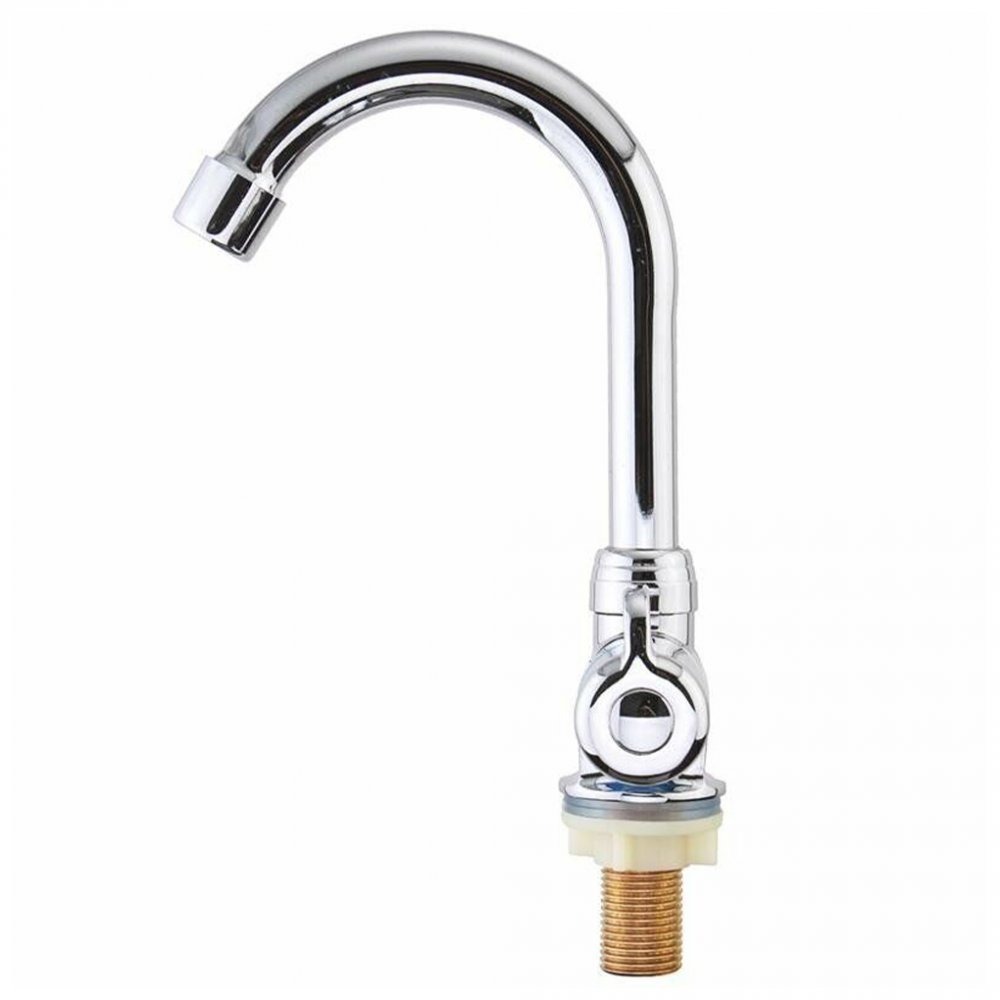 Классический автодомный складной кран для кухни. При необходимости носик просто складывается вниз вровень с поверхностью стола или в раковину. В этом кране возможность подключения только одного вида воды